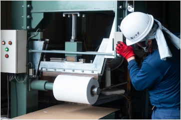 ロール紙の紙管と古紙を切り分けることで分別